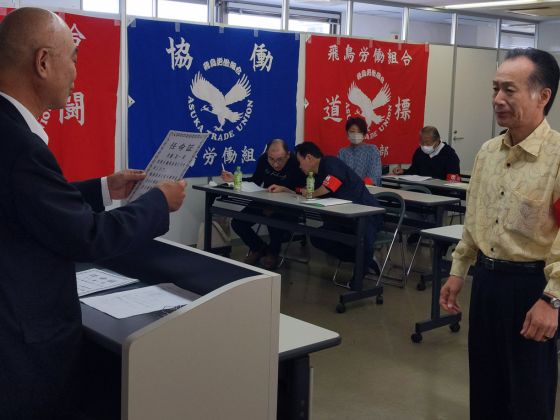 ・組合員総数 105名の2/3(70名)以上を確認し板橋支部規約第15条3項により本大会の成立を宣言