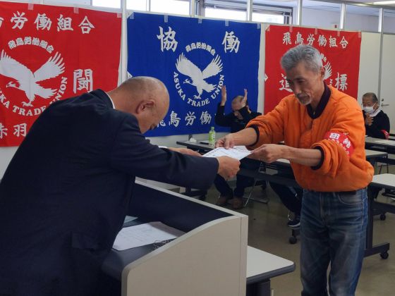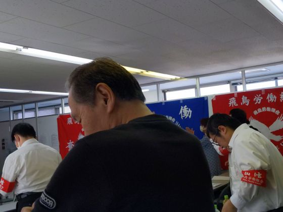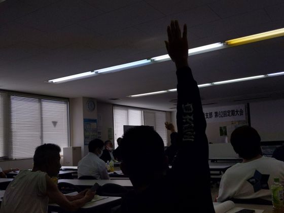 ➁定期大会の参加人数について、105名の組合員数に対し24名参加では1/4に達していない現状について改善が要求されました